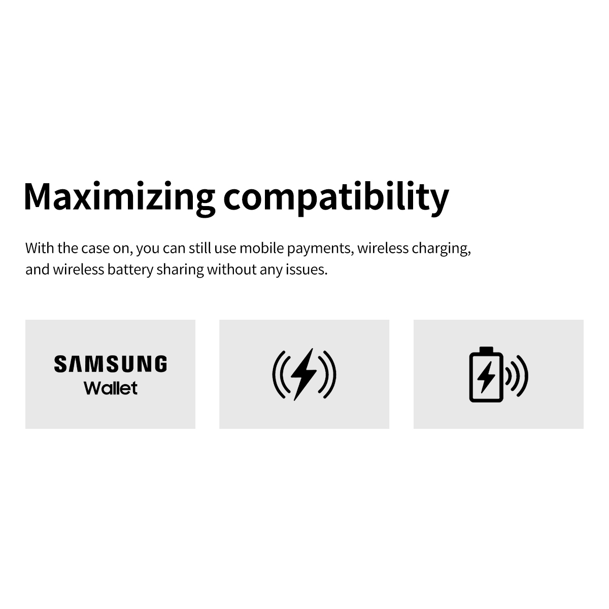 高品質韓國製造及設計。 "Designed for Samsung" 三星官方認證。 特有門鉸位保護。 簡約纖巧硬膠設計。優越屏幕及鏡頭保護。對應無線充電。
