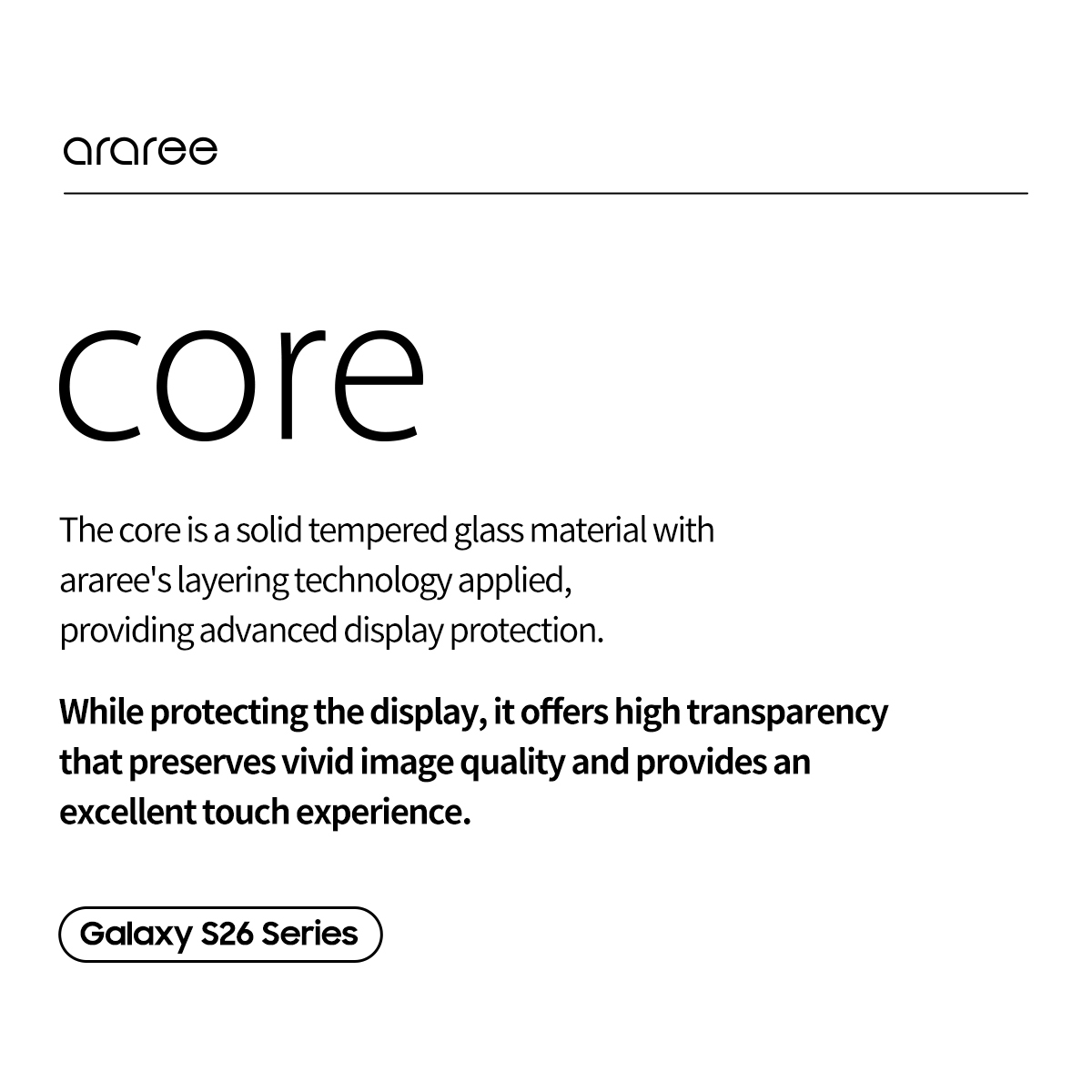 araree Core Glass 屏幕玻璃保護貼 - Galaxy S26 Plus