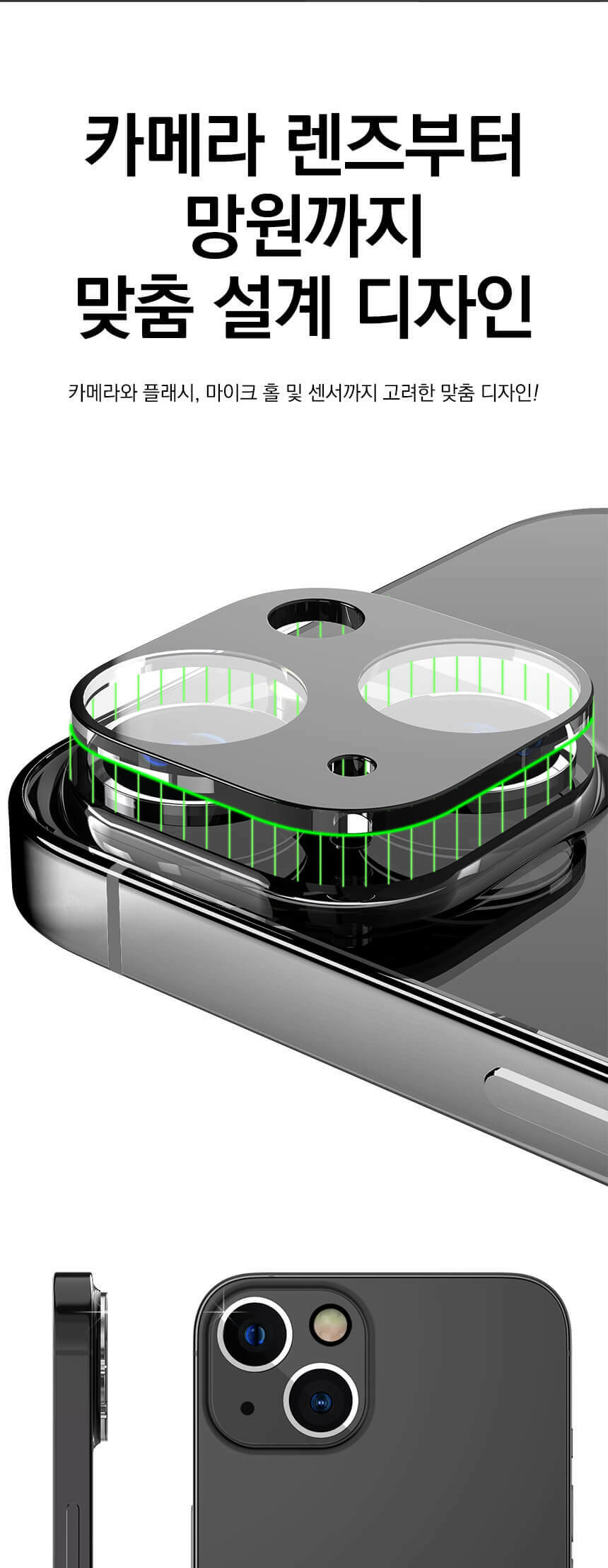 防刮花強化玻璃完全覆蓋鏡頭部份,輕易一體過安裝,貼服不易起泡。鏡頭、收音、閃光燈位置以立體切割,精準對位。防漏光設計,閃燈拍攝成像不受影響。韓國設計。