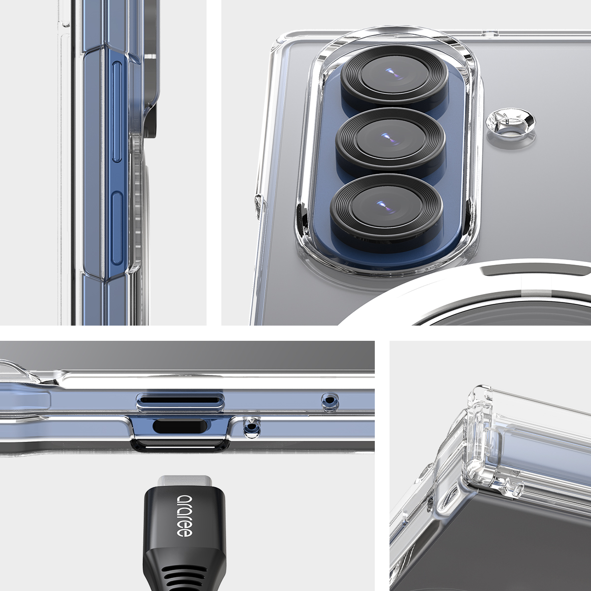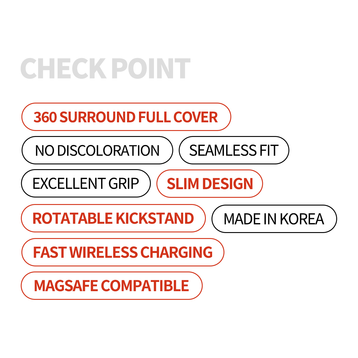 高品質韓國製造及設計 。 360金屬質材門鉸保護。MagSafe 對應。高透亮絕不變黃。簡約全透明外形 極佳手感。 內層特製微點紋可防水波紋。 兼容無線充電。