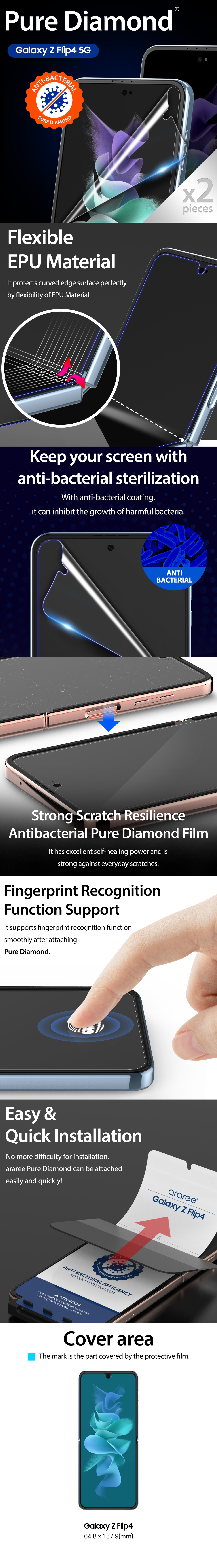 araree Pure Diamond Galaxy Z Flip 4 內屏抗菌保護膜 (兩件裝)
