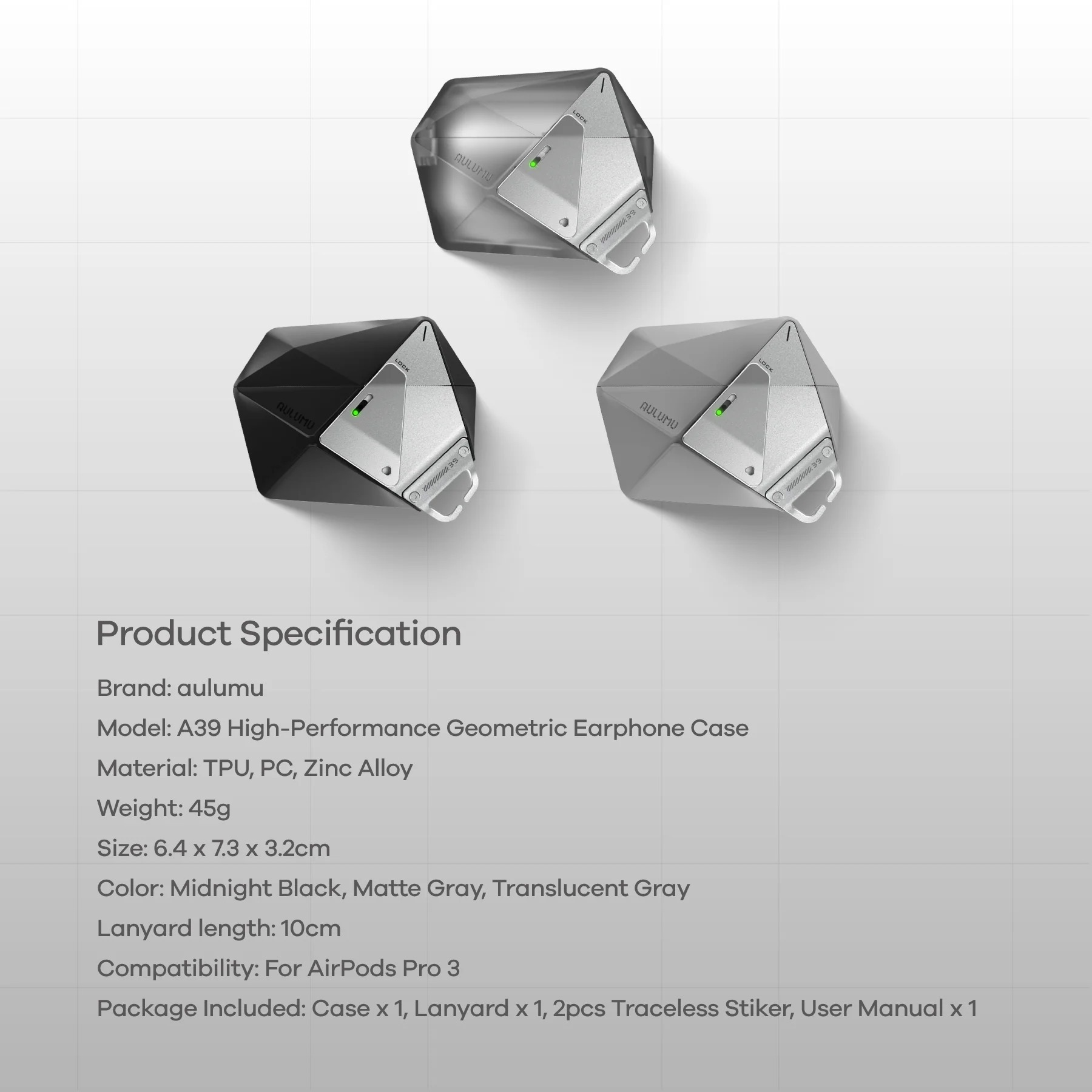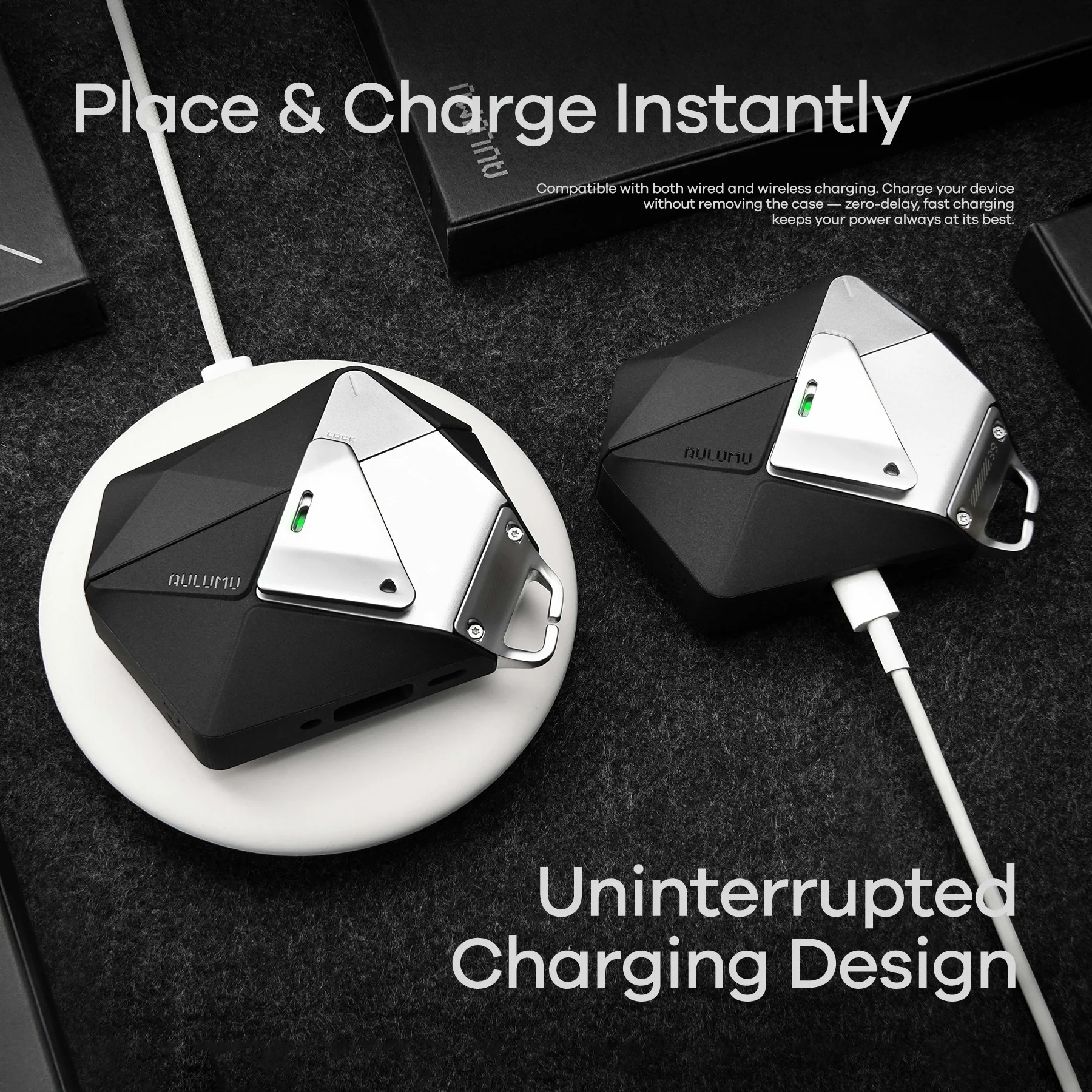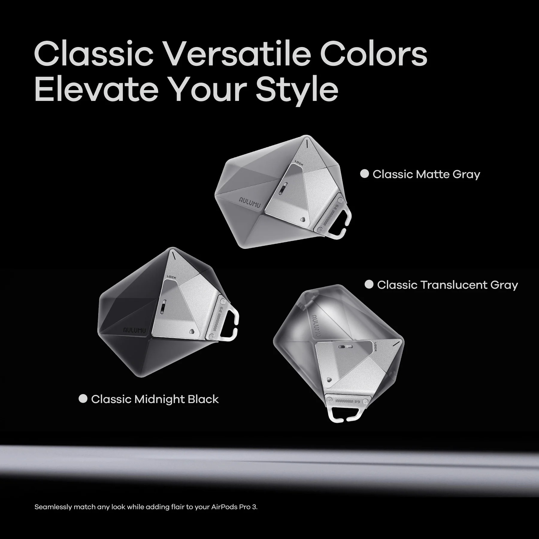 Aulumu 幾何保護殼(黑、灰色),啞面設計配鋅合金鎖扣,TPU 加固外殼防震耐用,支援無線充電並附掛繩。香港行貨,港澳地區免運費。