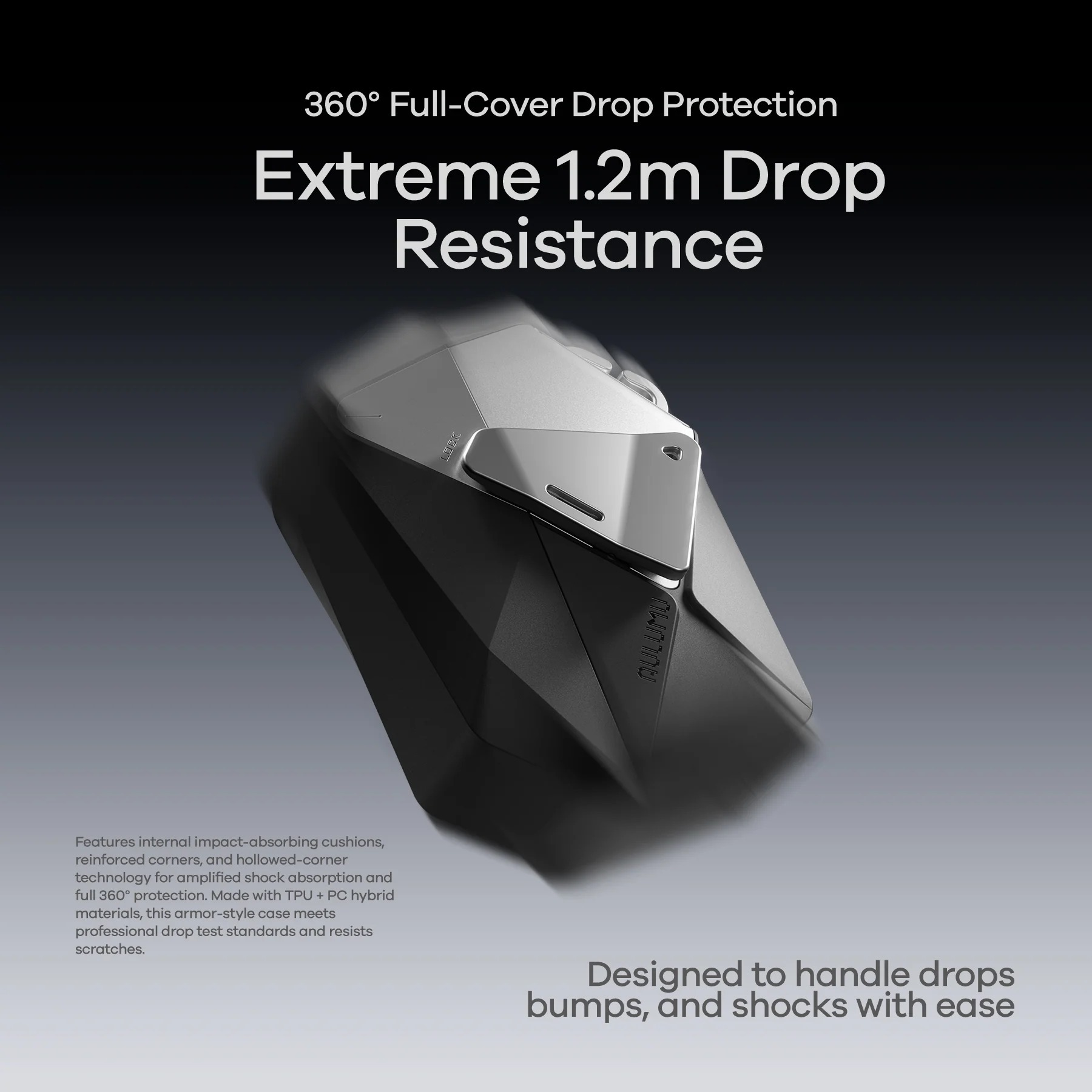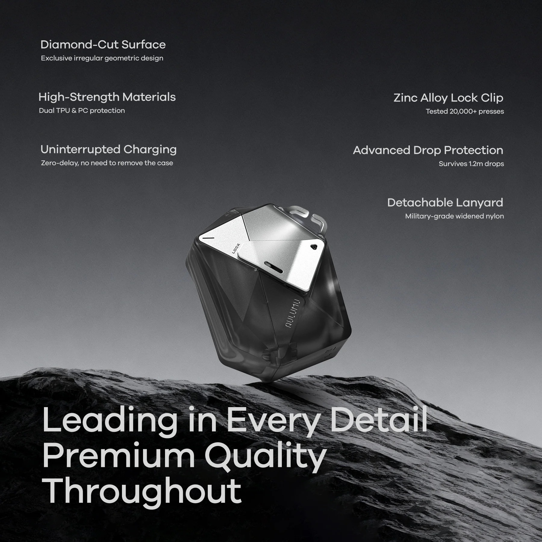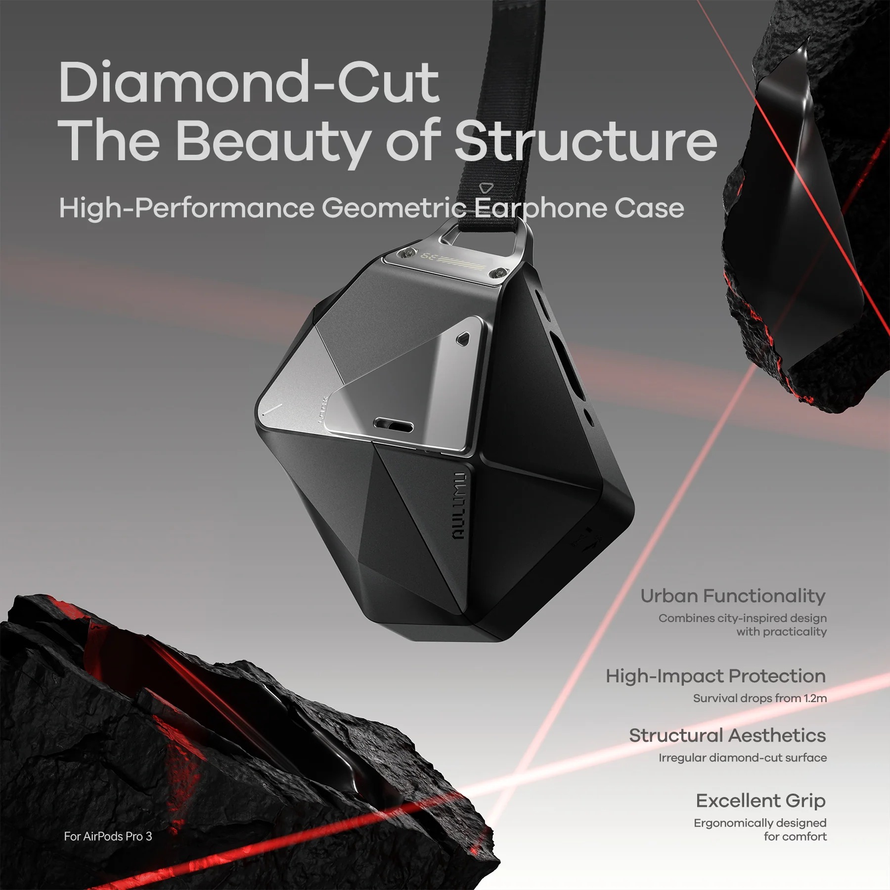 Aulumu 幾何保護殼(黑、灰色),啞面設計配鋅合金鎖扣,TPU 加固外殼防震耐用,支援無線充電並附掛繩。香港行貨,港澳地區免運費。