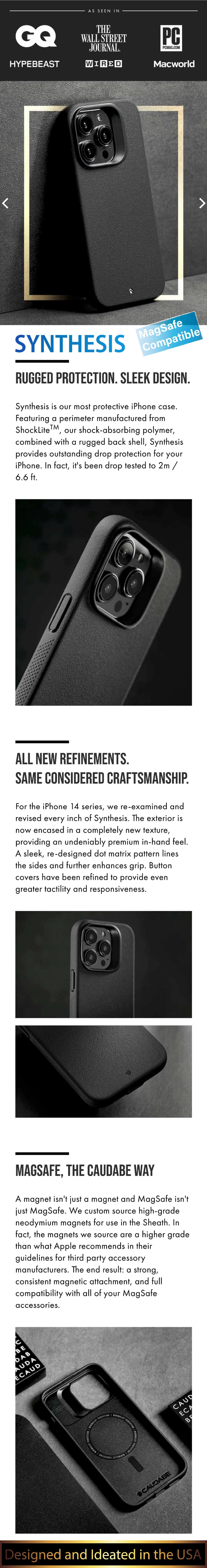A:Synthesis 混合式設計,邊框採用ShockLite™ 特殊材質製成,輕薄且帶高延展性,用久不鬆弛。背面則配以特制磨砂質感硬背板,防滑不跣手。