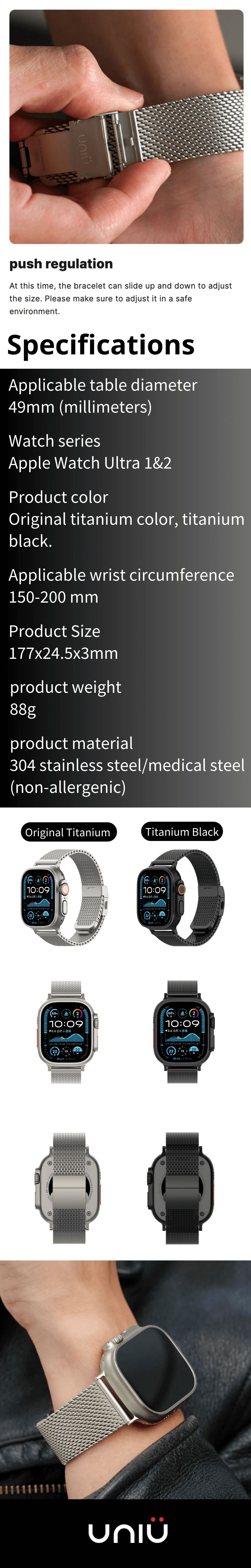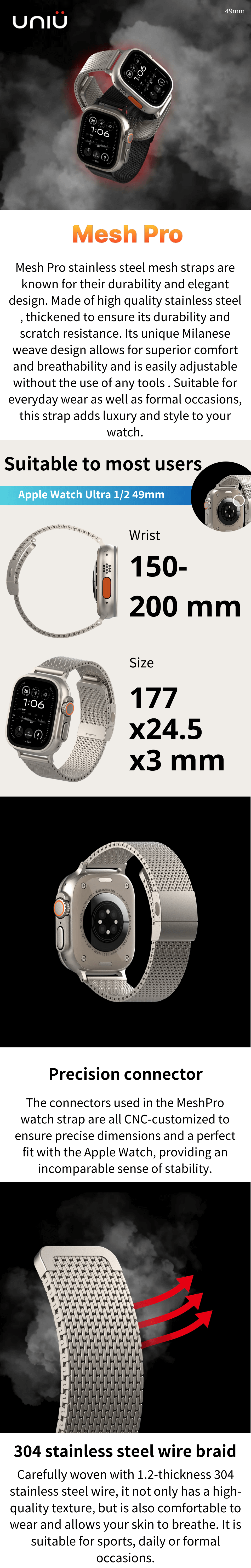 UNIU Mesh Pro Milan Stainless Strap Titanium Black- Apple Watch Ultra 1/2 49mm