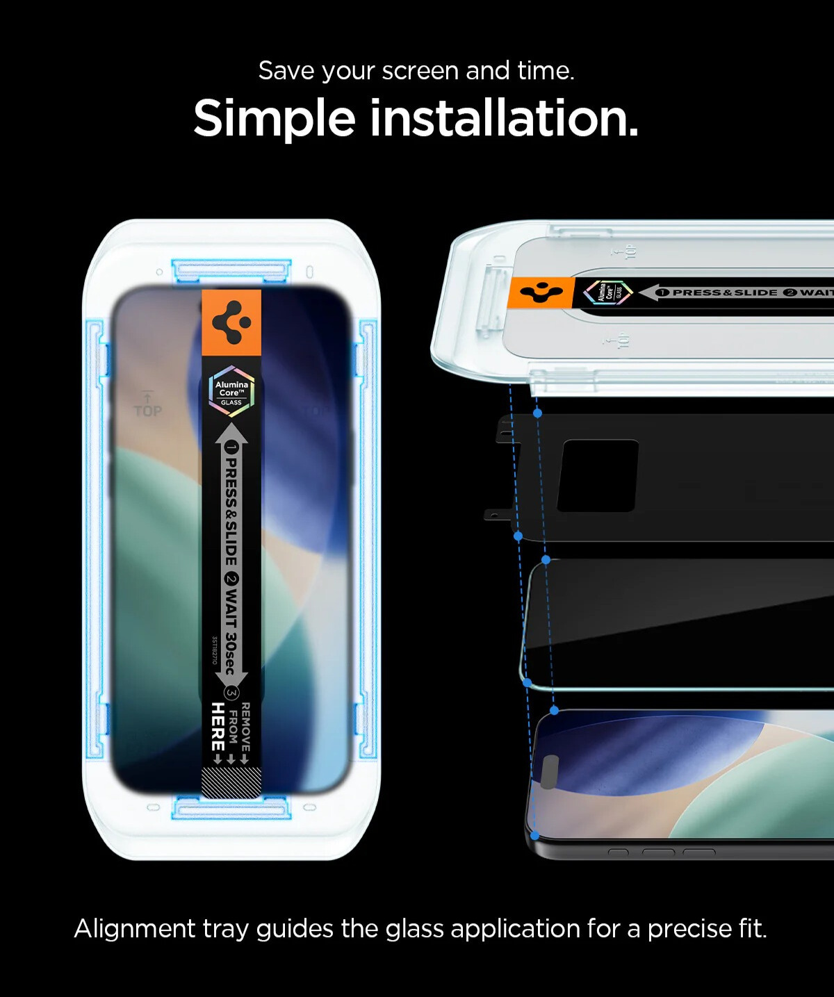 成為英雄,保護你的螢幕,也節省你的時間,EZ Fit 讓你以前所未有的方式為 iPhone 安裝螢幕保護貼,使用托盤對準保護貼,輕輕按下,就大功告成,簡單又輕鬆。