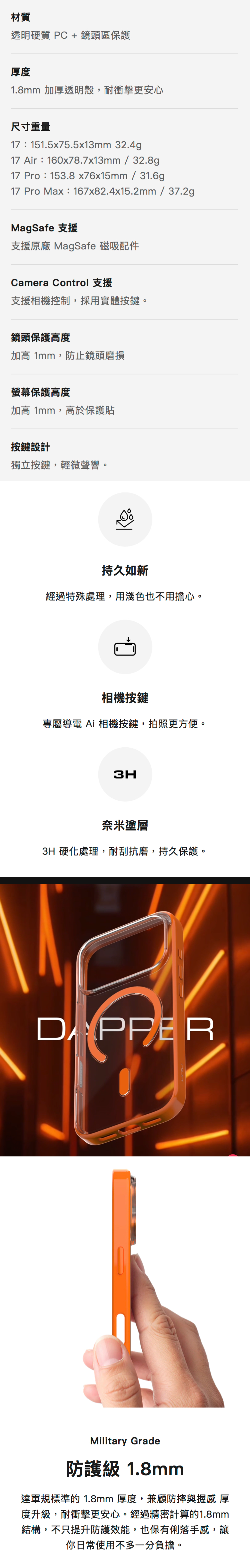 UNIU DAPPER Urban Gloss Armor 為 iPhone 17 帶來質感與防護兼具的全新選擇。展現現代風格美學,1.8mm 的全包式結構提供優異抗衝擊力,同時支援 MagSafe,展現細節與功能的極致平衡。